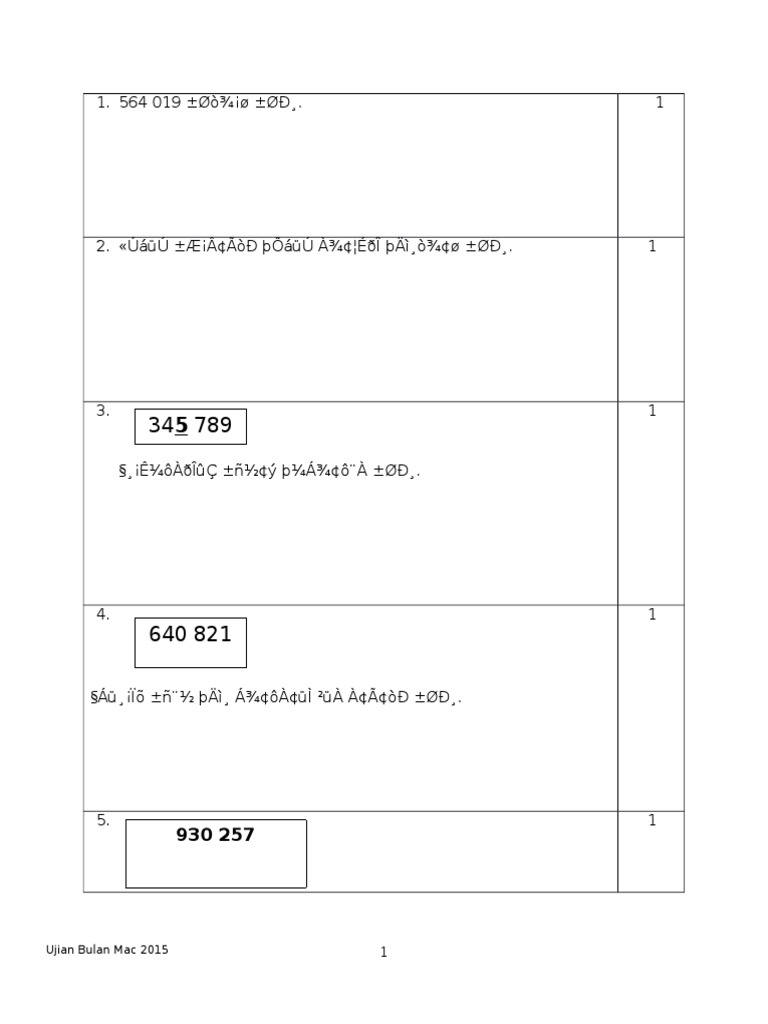 Ujian Matematik Tahun 5 : Ujian sumatif 1 matemati tahun 5.